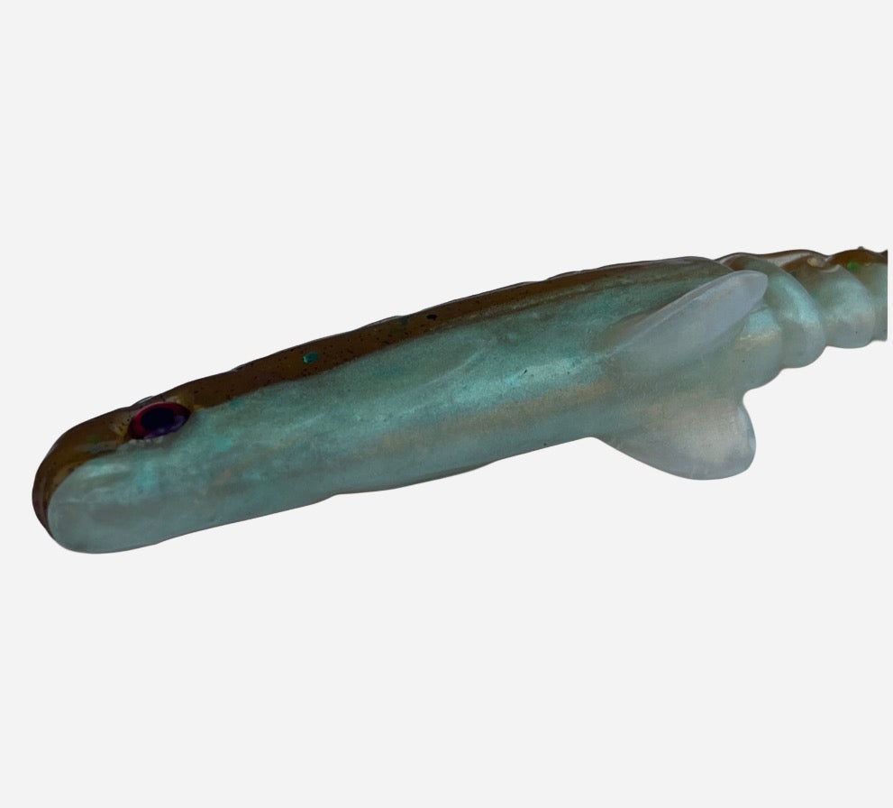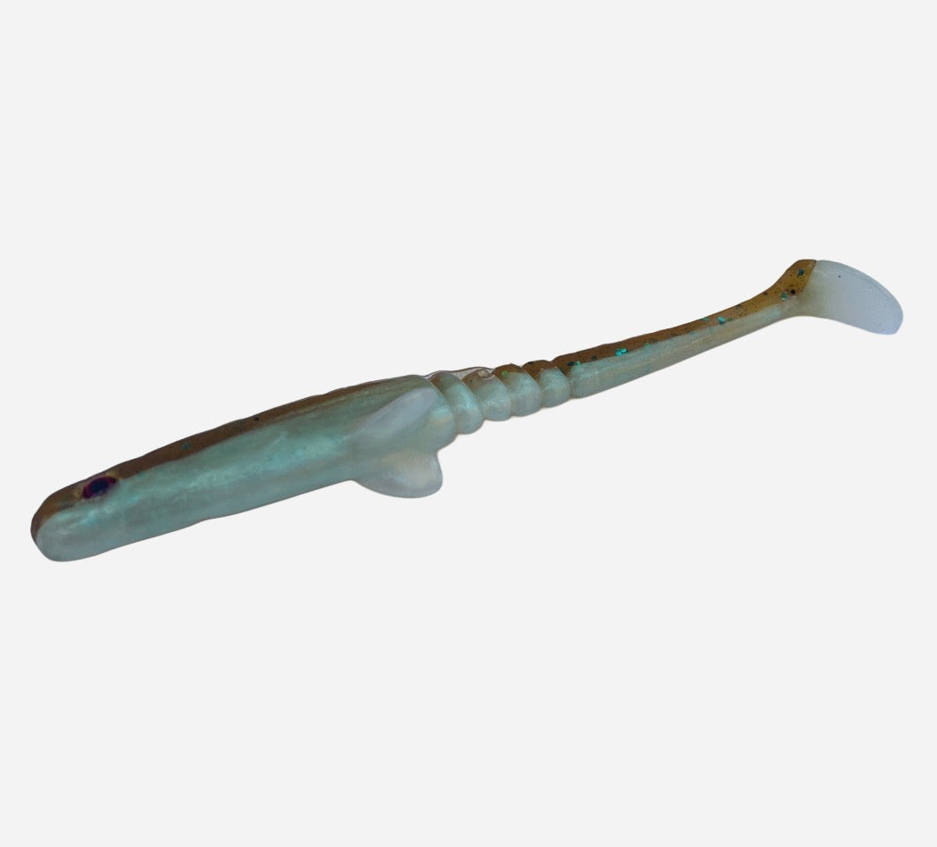 The Insider is a 17cm softbait with a paddle tail, handmade in Belgium. Its lifelike swimming action makes it highly effective for casting and pelagic sharpshooting, targeting zander, pike, and other predatory fish.